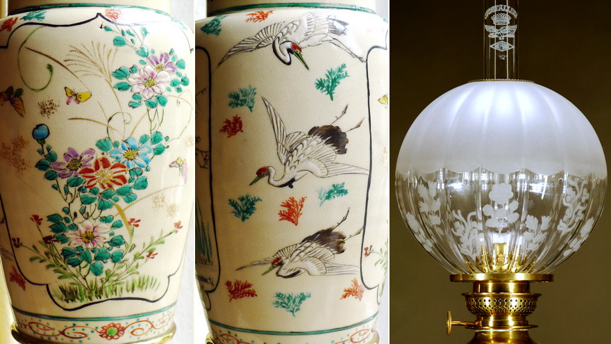 This lamp is the very first lamp I bought on eBay France. The unusual painting of the majolica vase in Japanese style had aroused my interest. At that time, I knew nothing about Far Eastern vases by Satsuma or Imari, which were converted into lamps in France.