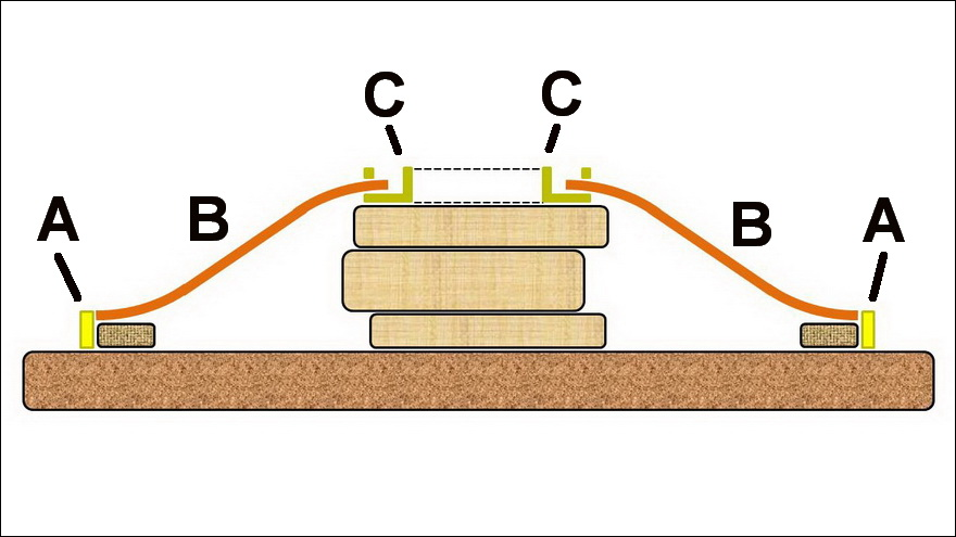 Brass rod inserted at the bottom between two rows of nails