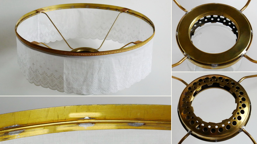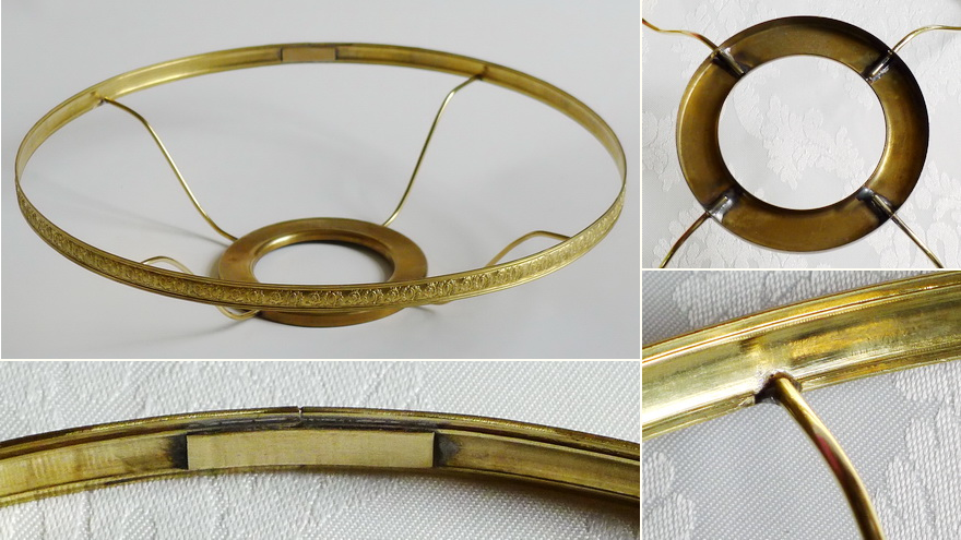 Top row, from the left: The shade holder made of thick decorative brass band and with 4 support arms