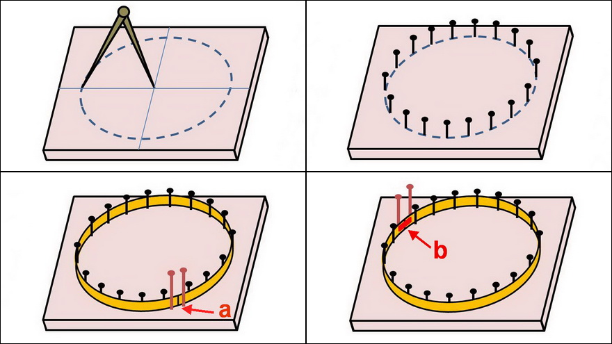 Nails hammered along the drawn circle